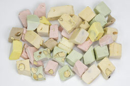 Sugar, Glucose syrup, ALMONDS, Ouwel sheet (potato starch, sunflower oil), Colour (E160e), Colour (E160a), Colour (E141), Colour (E120), Colour (E100), Natural strawberry flavour, Natural pistachio flavour, Natural lemon flavour, Natural orange flavour, EGG white powder, Natural vanilla flavour, Cocoa powder